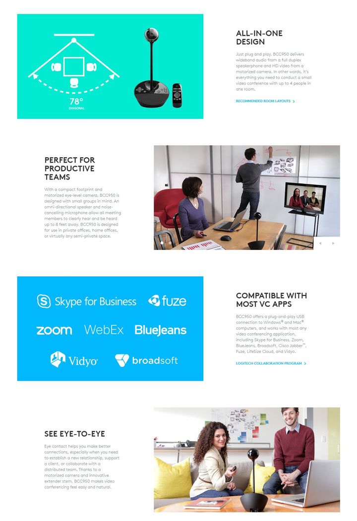 The BCC950 works seamlessly with virtually all leading video conferencing software and platforms, including: