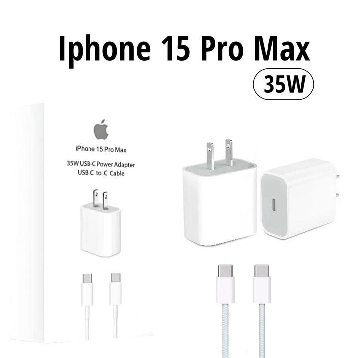 IPHONE 15 PRO MAX 2 PIN (US PIN) 35W USB-C POWER ADAPTER WITH USB-C TO C CABLE
