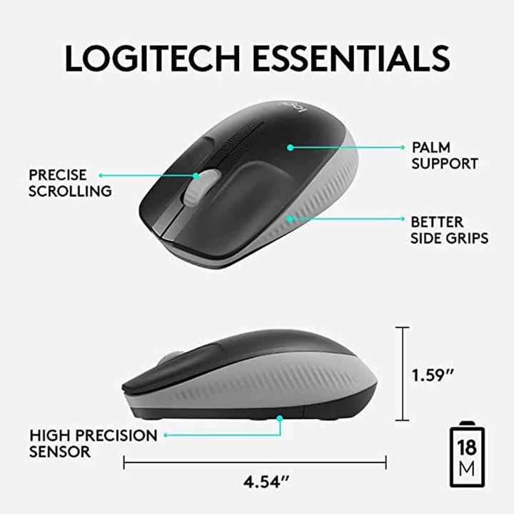 M190 Wireless Mouse - Gray Go Wireless with Logitech M190 – Full-Size Mouse Grey 🖤 | Blue 🔵 | Red 🔴 | Comfort & Control