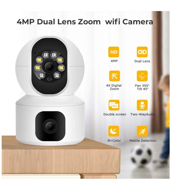 SPEED-X N9-2 HD Smart 4MP Double Lens WiFi Camera – Auto-Tracking, IR Night Vision & Two-Way Audio..