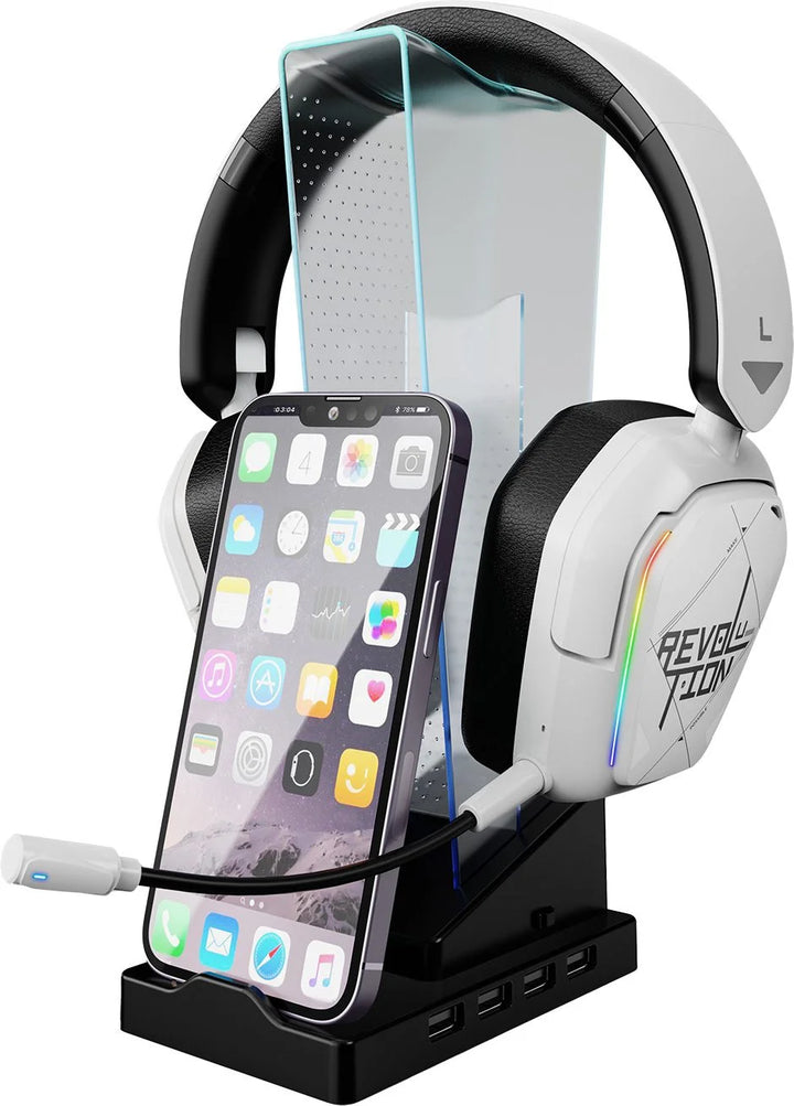 Xtrike-Me HT-09 Headset & Phone Stand with 4 USB Ports and LED Light – Stylish & Functional.